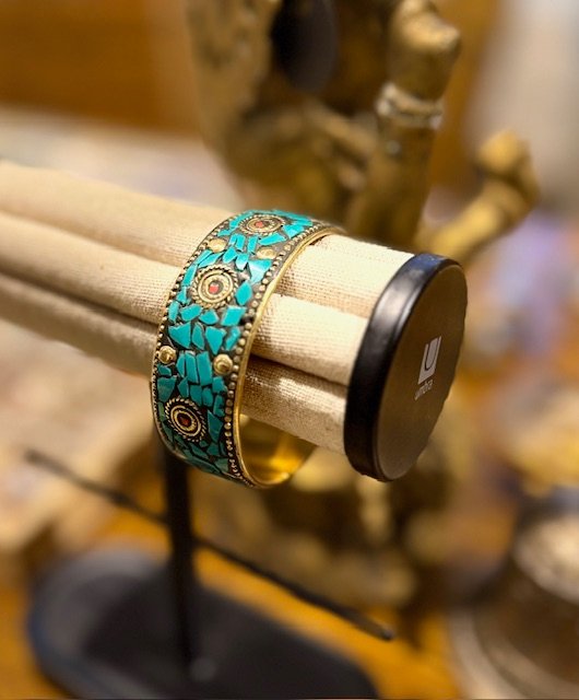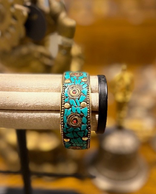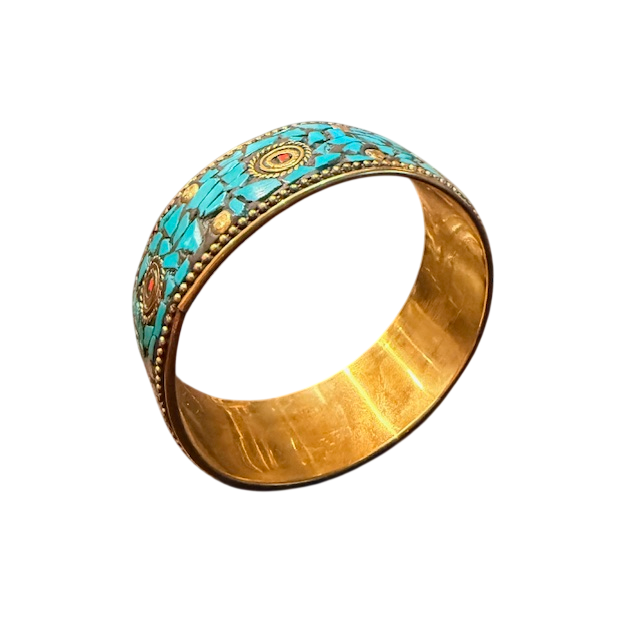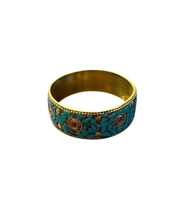 Žalvarinė apyrankė dekoruota spalvingais mozaikos raštais.