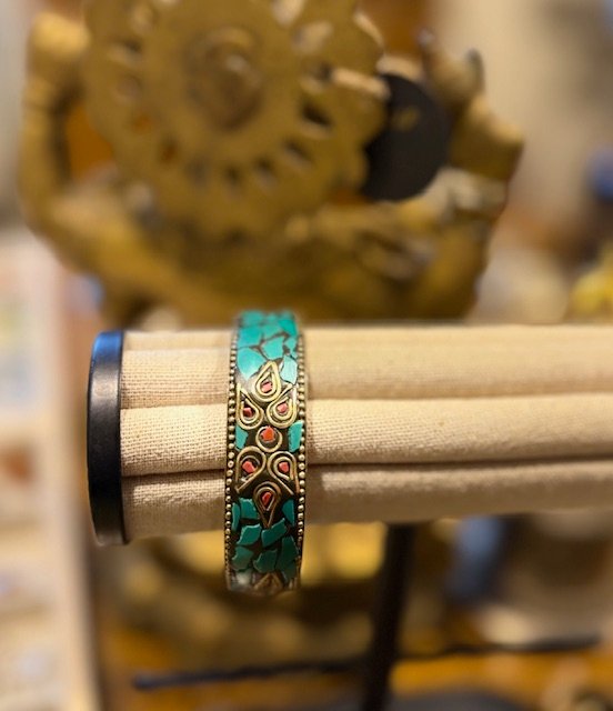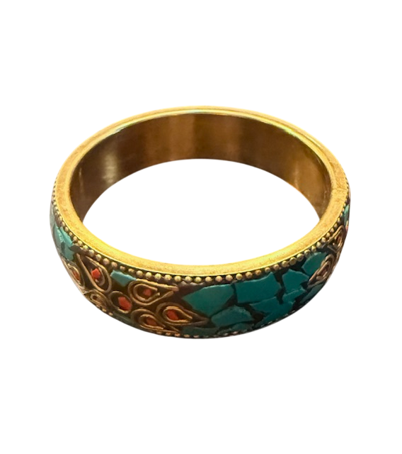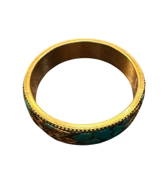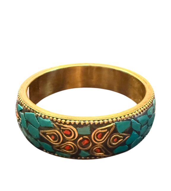 Žalvarinė apyrankė dekoruota spalvingais mozaikos raštais.
