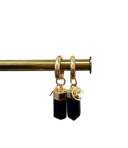 Tai elegantiški ir simboliški auskarai, kuriuose derinamas natūralus juodasis oniksas ir klasikinis Gyvybės medžio motyvas. Oniksas – gilaus, sodraus juodumo akmuo – suteikia papuošalui paslaptingumo, subtilios prabangos ir apsaugos simboliką. Jis dažnai siejamas su vidine stiprybe, ramybe ir emociniu stabilumu.