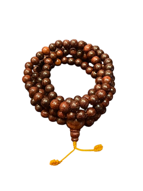 Nepalas, 108 karoliukai (plius vieną „guru bead“), pagal tradicinį skaičių mantros kartojimui, ilgis apie 35 cm, karoliukų skersmuo 8 mm