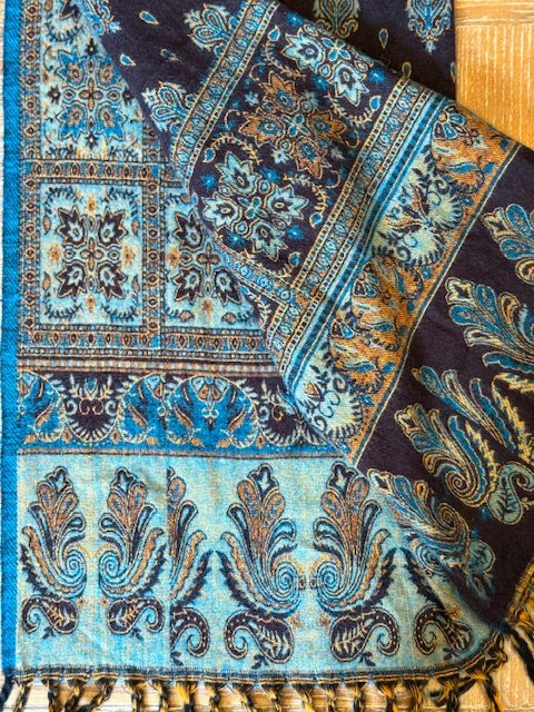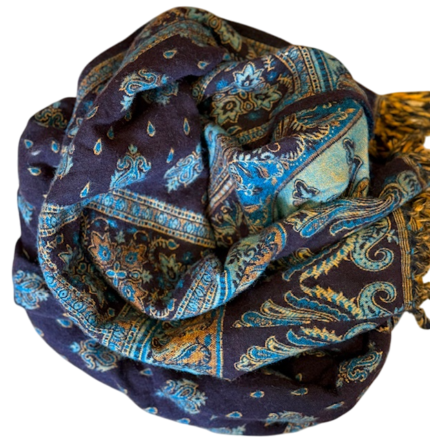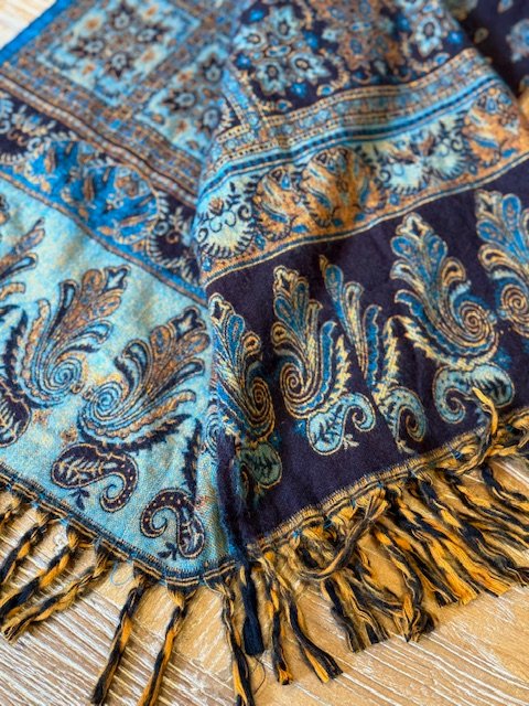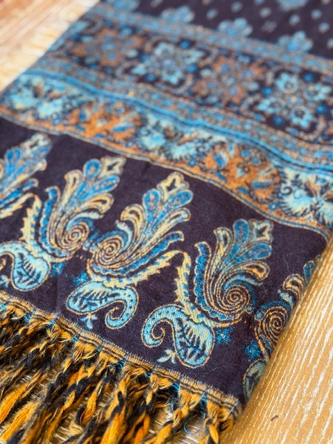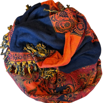 Šalis iš natūralios jako vilnos. Gali būti naudojamas kaip pledas arba šalikas. Šiltas, jaukus ir gražus šalis praskaidrins jūsų nuotaiką indiškomis spalvomis.