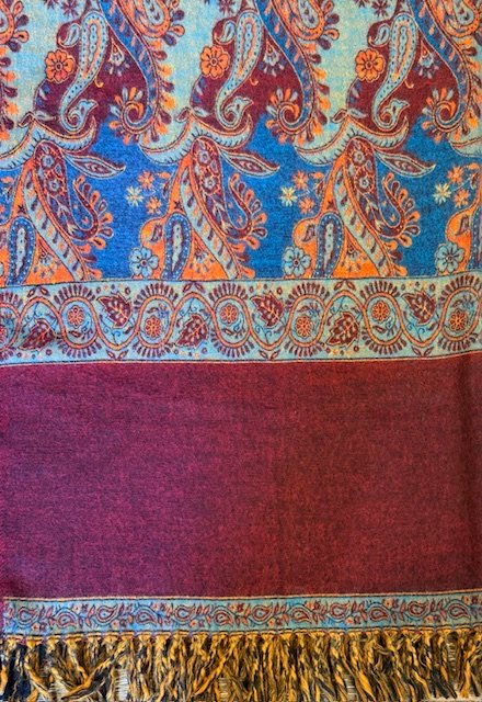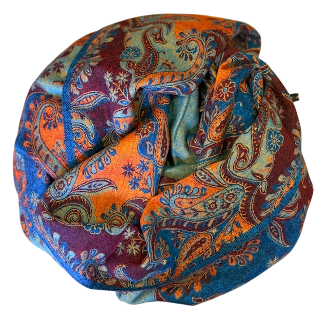 Išskirtinio dizaino šalikas, įkvėptas rytietiškų raštų ir spalvų harmonijos. Švelnus, lengvas ir jaukus – suteikia šilumos bei išskirtinumo kiekvienai dienai. Puikiai tinka tiek kasdieniam nešiojimui, tiek kaip stilingas akcentas ar lengvas užklotas. Nešiojamas kaip šalikas, apgaubiantis apsiaustas ar naudojamas kaip jaukus pledas – šis universalus aksesuaras suteikia jūsų įvaizdžiui tekstūros, charakterio ir subtilaus žavesio.