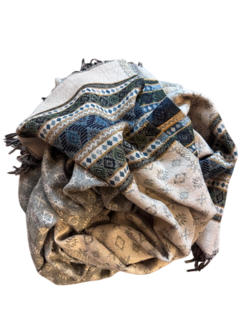 Išskirtinio dizaino šalikas, įkvėptas rytietiškų raštų ir spalvų harmonijos. Švelnus, lengvas ir jaukus – suteikia šilumos bei išskirtinumo kiekvienai dienai. Puikiai tinka tiek kasdieniam nešiojimui, tiek kaip stilingas akcentas ar lengvas užklotas. Nešiojamas kaip šalikas, apgaubiantis apsiaustas ar naudojamas kaip jaukus pledas – šis universalus aksesuaras suteikia jūsų įvaizdžiui tekstūros, charakterio ir subtilaus žavesio.