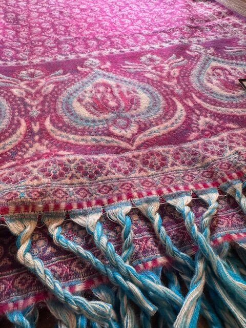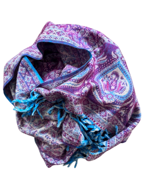 Išskirtinio dizaino šalikas, įkvėptas rytietiškų raštų ir spalvų harmonijos. Švelnus, lengvas ir jaukus – suteikia šilumos bei išskirtinumo kiekvienai dienai. Puikiai tinka tiek kasdieniam nešiojimui, tiek kaip stilingas akcentas ar lengvas užklotas. Nešiojamas kaip šalikas, apgaubiantis apsiaustas ar naudojamas kaip jaukus pledas – šis universalus aksesuaras suteikia jūsų įvaizdžiui tekstūros, charakterio ir subtilaus žavesio.