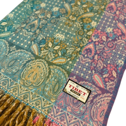 Šalis iš natūralios jako vilnos. Gali būti naudojamas kaip pledas arba šalikas. Šiltas, jaukus ir gražus šalis praskaidrins jūsų nuotaiką indiškomis spalvomis.