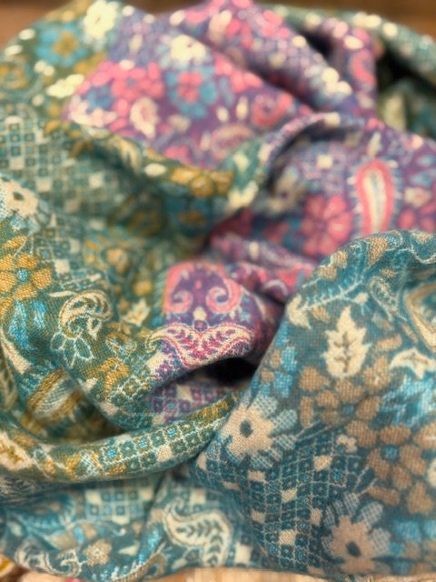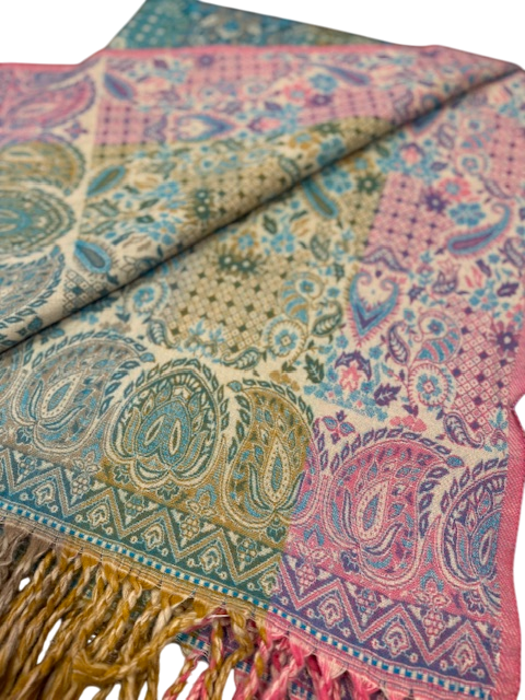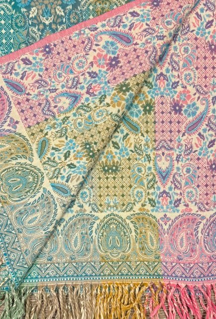 Šalis iš natūralios jako vilnos. Gali būti naudojamas kaip pledas arba šalikas. Šiltas, jaukus ir gražus šalis praskaidrins jūsų nuotaiką indiškomis spalvomis.