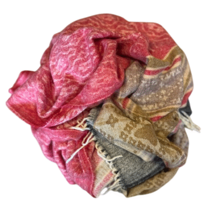 Šalis iš natūralios jako vilnos. Gali būti naudojamas kaip pledas arba šalikas. Šiltas, jaukus ir gražus šalis praskaidrins jūsų nuotaiką indiškomis spalvomis.