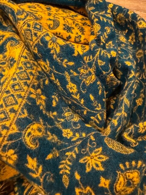 Šalis iš natūralios jako vilnos. Gali būti naudojamas kaip pledas arba šalikas. Šiltas, jaukus ir gražus šalis praskaidrins jūsų nuotaiką indiškomis spalvomis.
