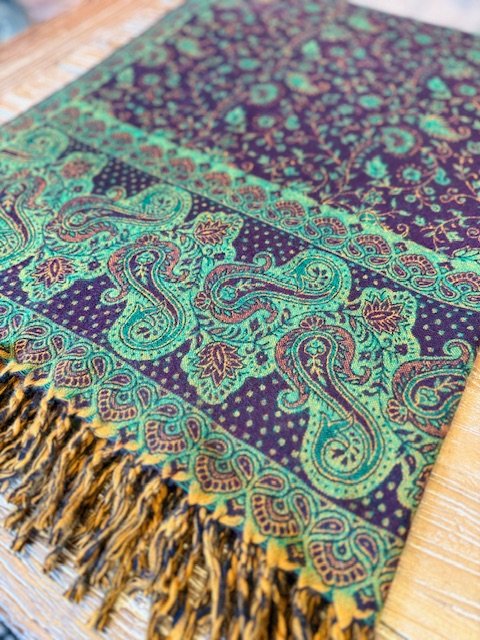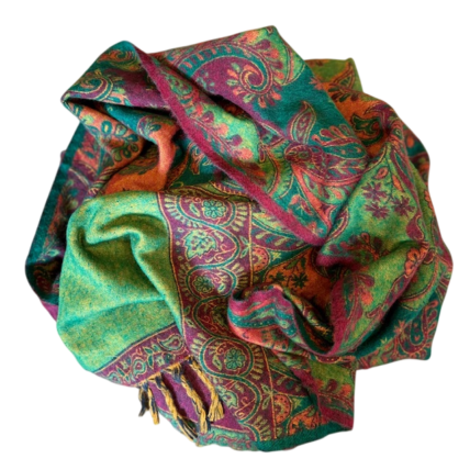 Šalis iš natūralios jako vilnos. Gali būti naudojamas kaip pledas arba šalikas. Šiltas, jaukus ir gražus šalis praskaidrins jūsų nuotaiką indiškomis spalvomis.