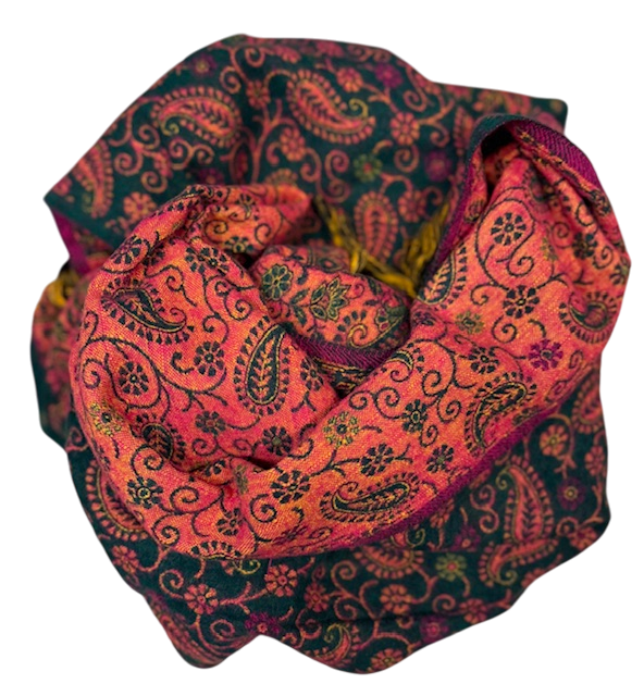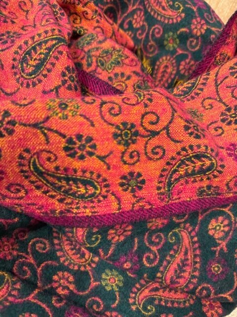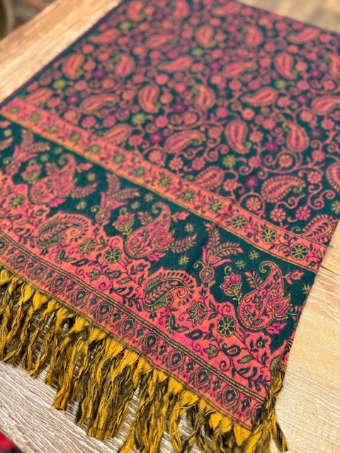 Šalis iš natūralios jako vilnos. Gali būti naudojamas kaip pledas arba šalikas. Šiltas, jaukus ir gražus šalis praskaidrins jūsų nuotaiką indiškomis spalvomis.