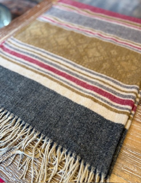 Šalis iš natūralios jako vilnos. Gali būti naudojamas kaip pledas arba šalikas. Šiltas, jaukus ir gražus šalis praskaidrins jūsų nuotaiką indiškomis spalvomis.