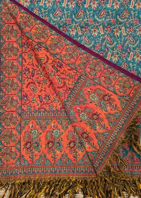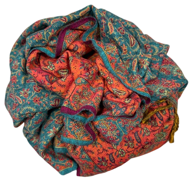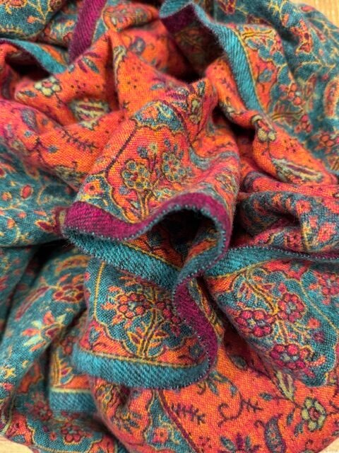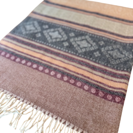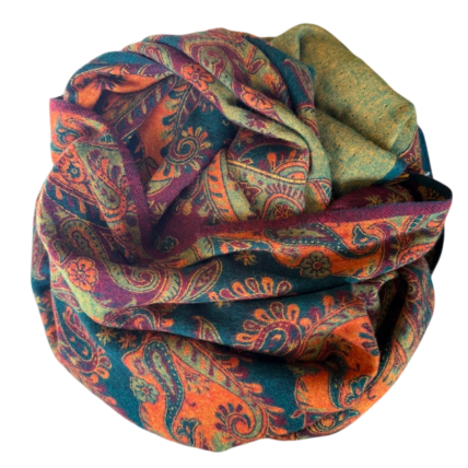 Šalis iš natūralios jako vilnos. Gali būti naudojamas kaip pledas arba šalikas. Šiltas, jaukus ir gražus šalis praskaidrins jūsų nuotaiką indiškomis spalvomis.