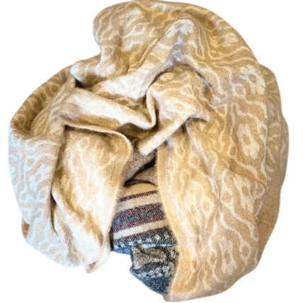 Šalis iš natūralios jako vilnos. Gali būti naudojamas kaip pledas arba šalikas. Šiltas, jaukus ir gražus šalis praskaidrins jūsų nuotaiką indiškomis spalvomis.
