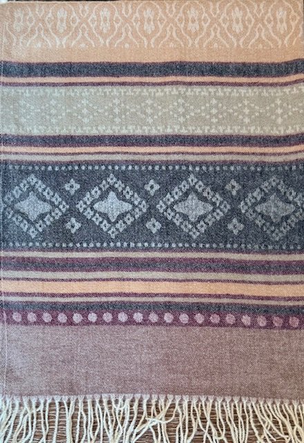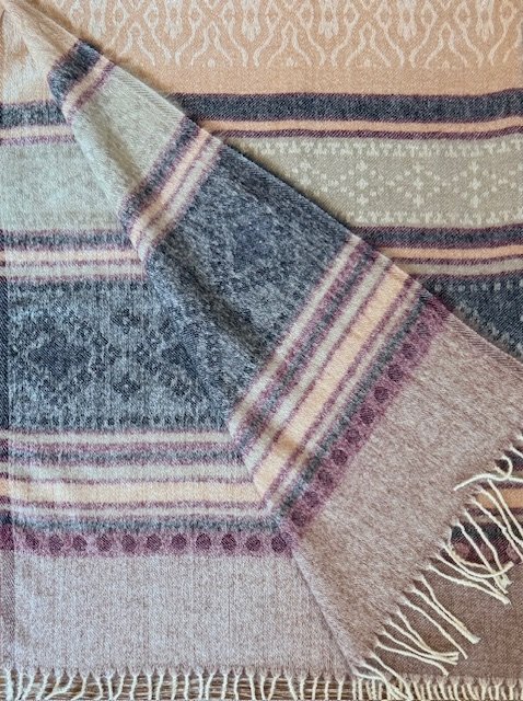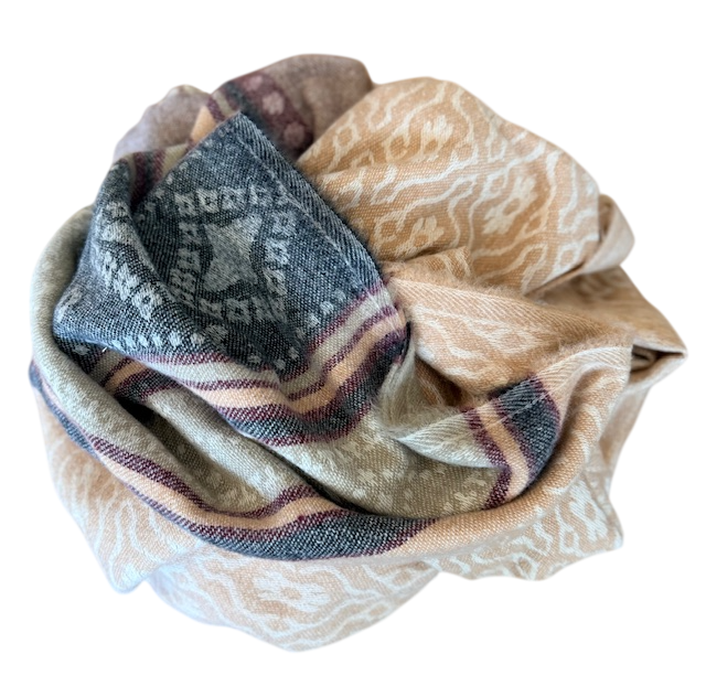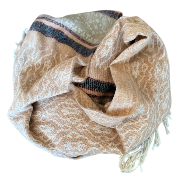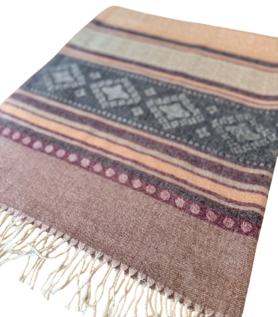 Šalis iš natūralios jako vilnos. Gali būti naudojamas kaip pledas arba šalikas. Šiltas, jaukus ir gražus šalis praskaidrins jūsų nuotaiką indiškomis spalvomis.