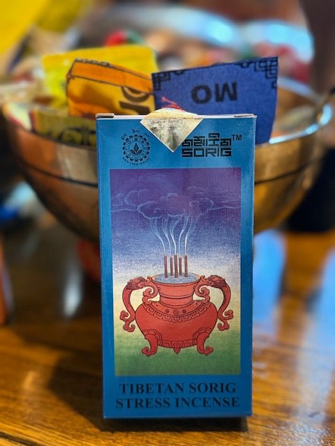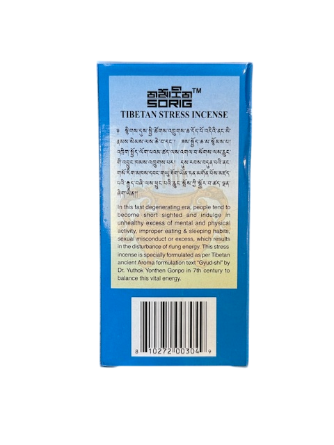 “Sorig Stress Incense“ — tai tradicinis tibetietiškas smilkalų mišinys, kurį gamina Men-Tsee-Khang, Tibeto medicinos ir astrologijos institutas įkurtas 1961 m. Dharamsaloje (Indija) pagal Jo Šventenybės XIV Dalai Lamos nurodymą.